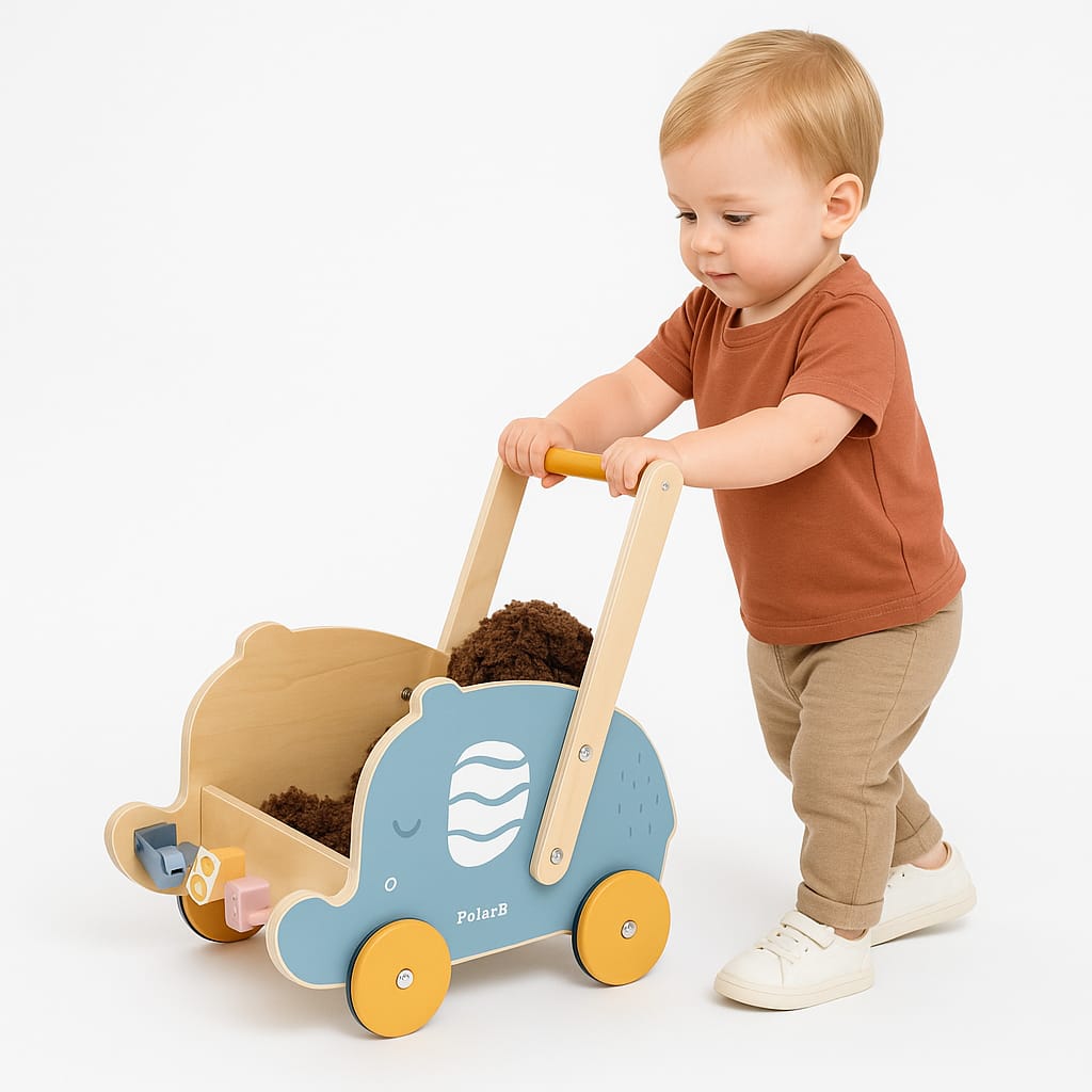 Carrellino Primi Passi Elefantino PolarB – Gioco Educativo in Legno